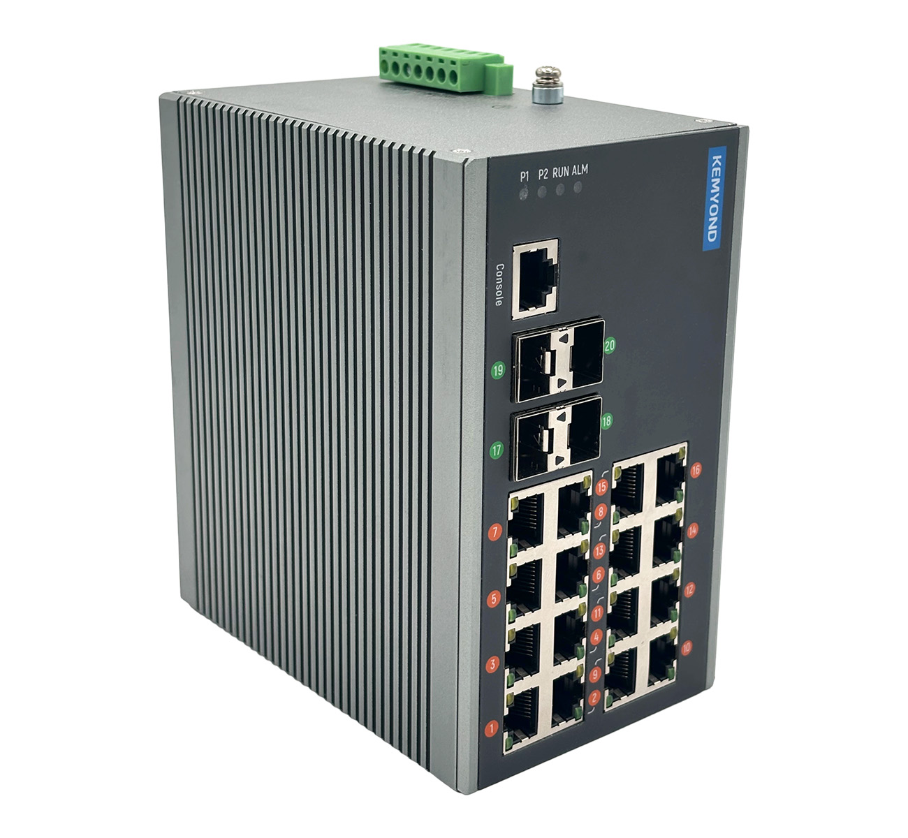 網絡架構采用樹型結構,使得整個系統的擴展性較強,且隔離單點故障簡單;網絡采用百兆接入+千兆匯聚的組合,完全符合現場業務流特點;根據不同業務劃分不同業務VLAN,避免不同業務之間相互影響;工業級交換機,防護等級IP40,工作溫度可達-40℃~ +85℃,MTBF時間>350000h;統一的網絡管理系統 KYNMS,提供實時在線網絡設備監控和管理;